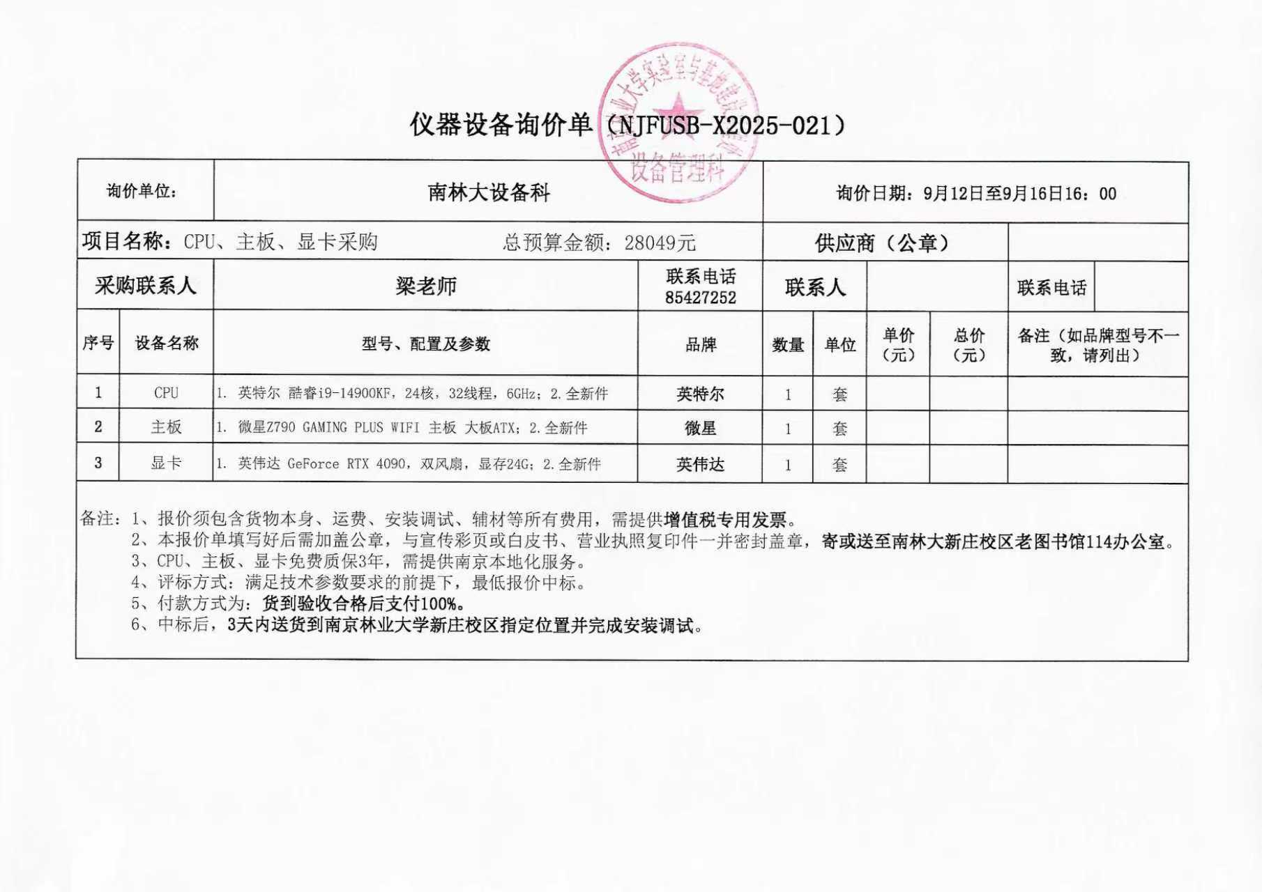CPU、主板、显卡采购(NJFUSB-X2025-021)