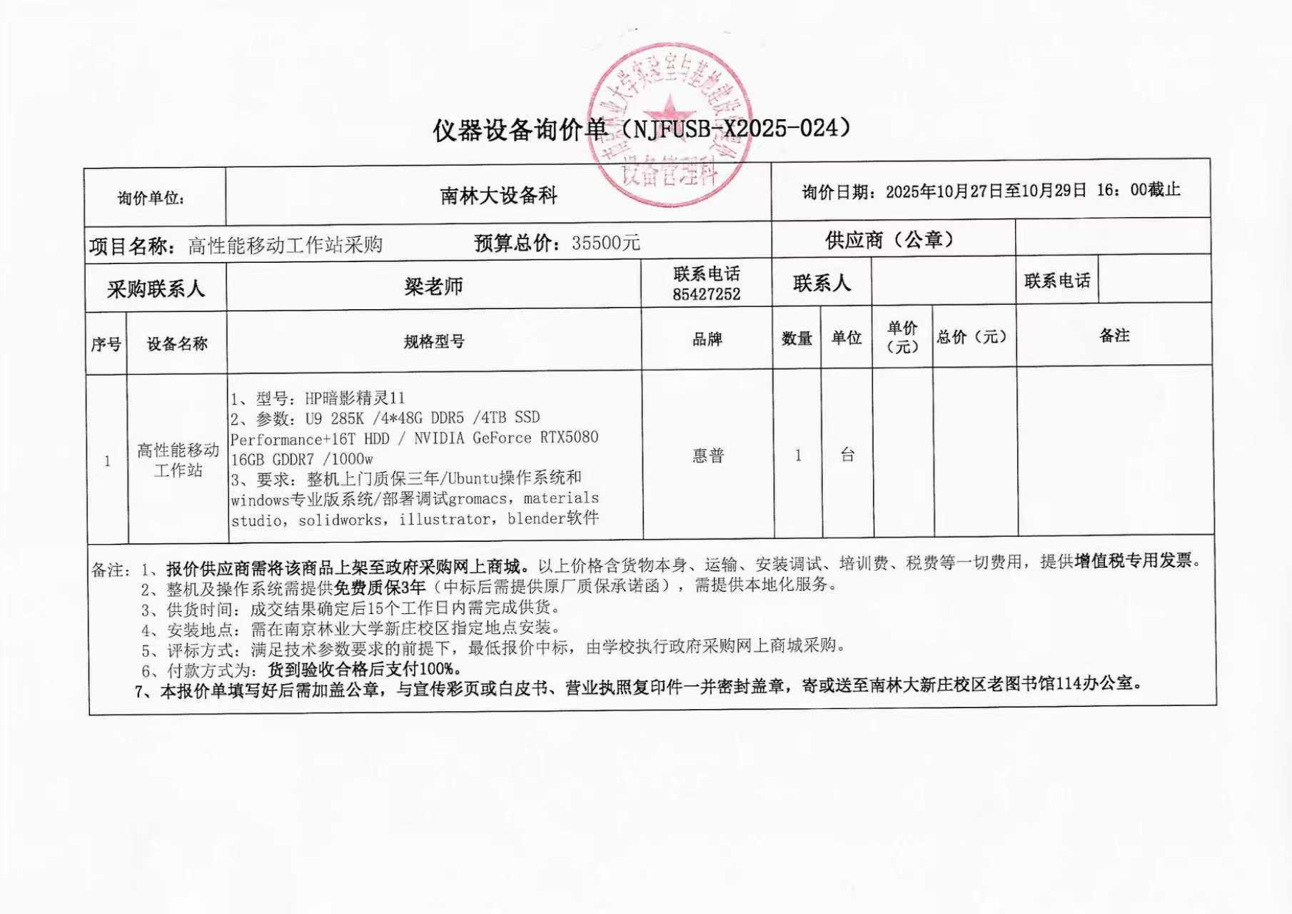 高性能移动工作站采购(NJFUSB-X2025-024)