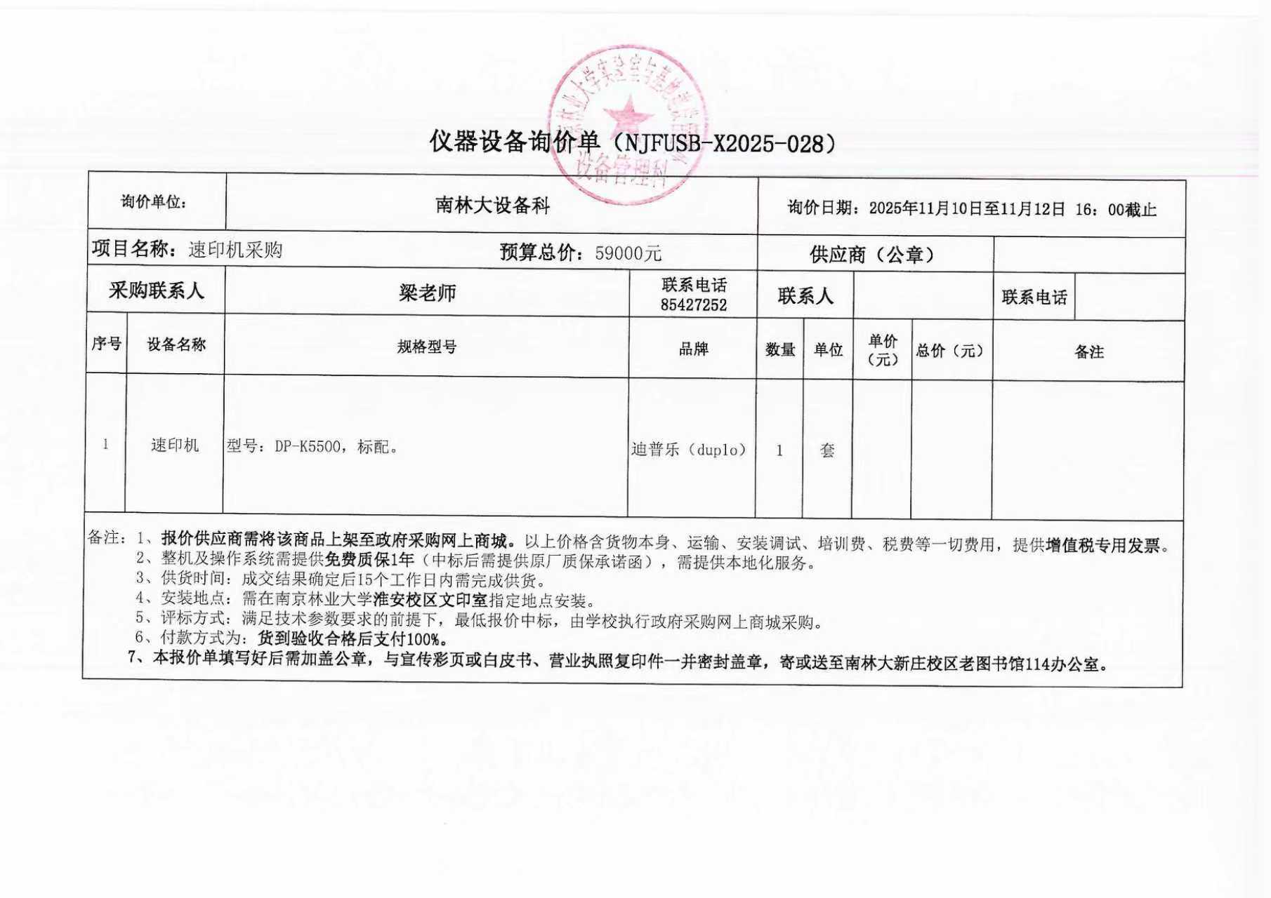 >> 设备管理 >> 信息公告 >> 采购公告