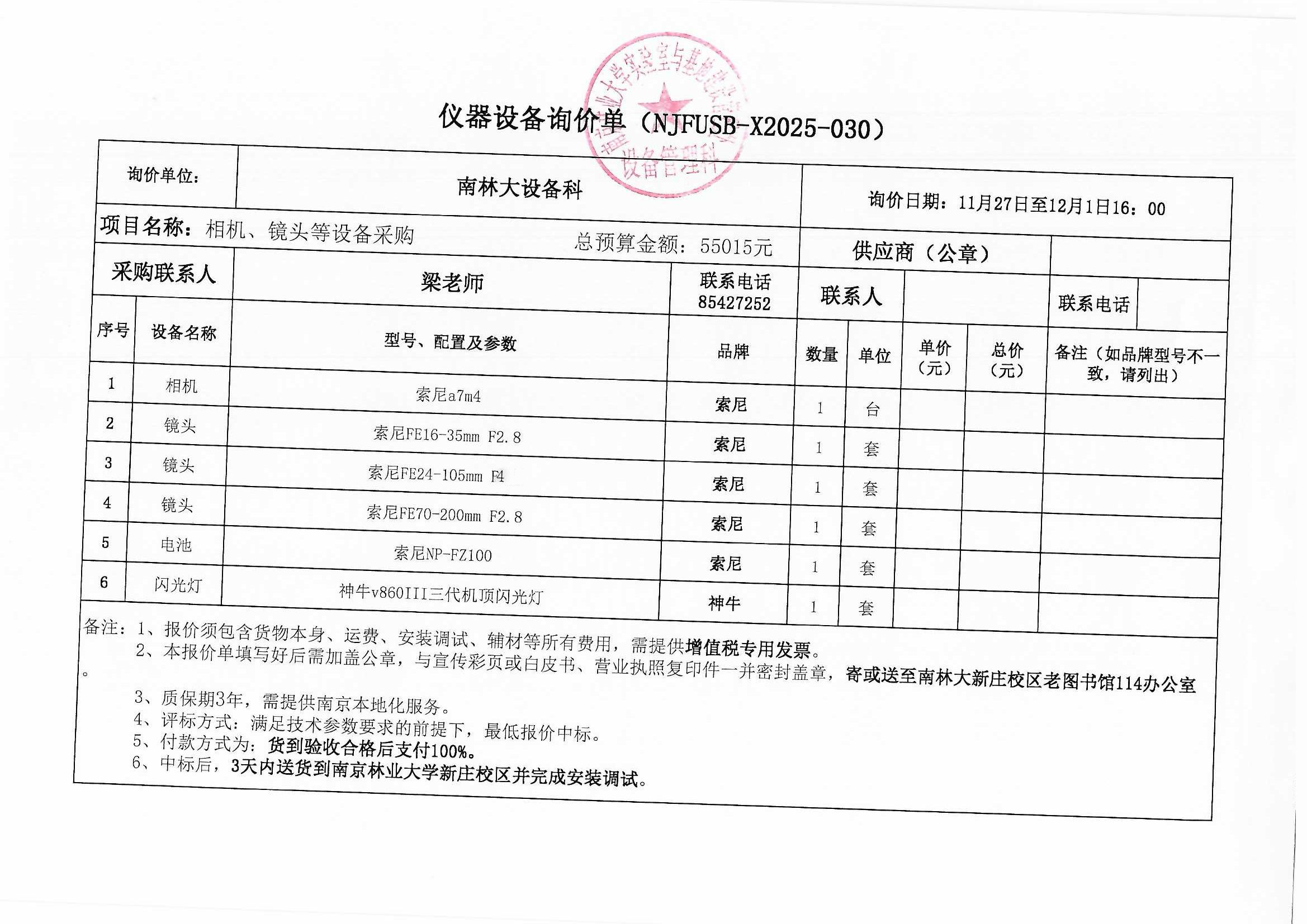相机、镜头等设备采购(NJFUSB-X2025-030)
